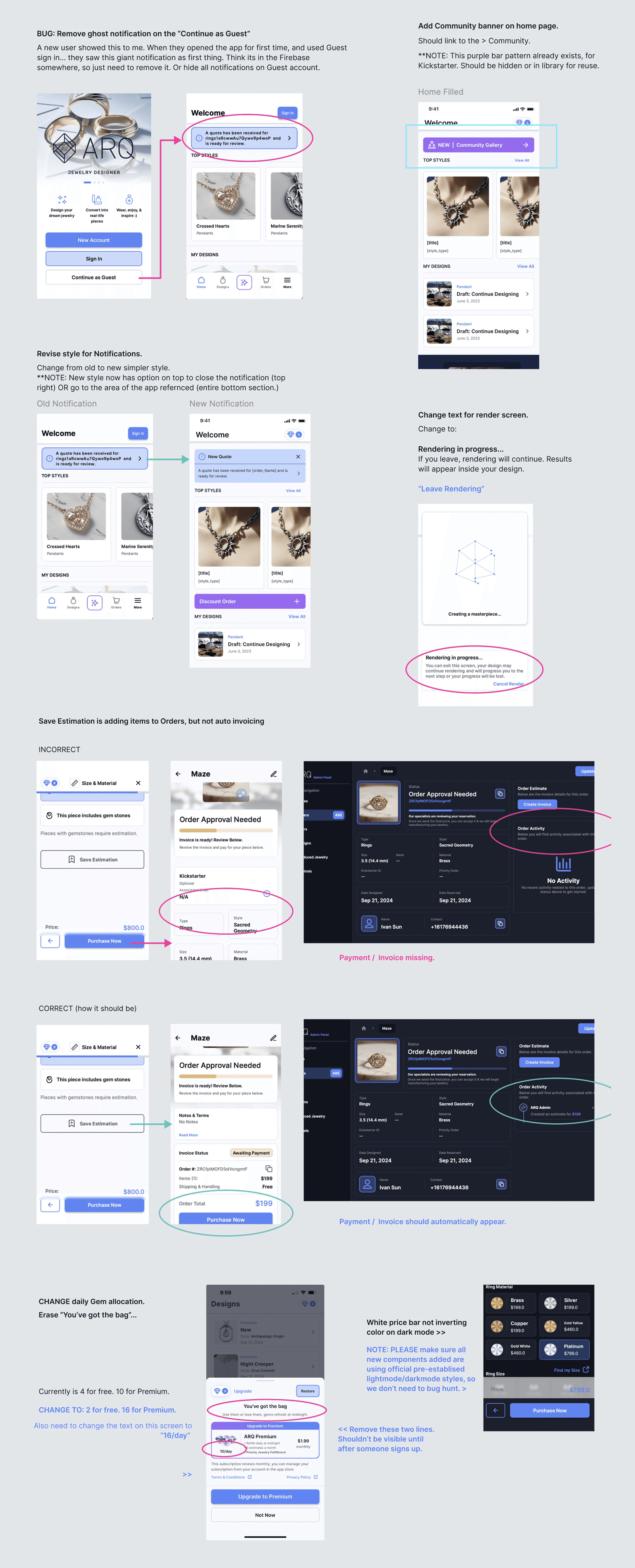 Throughout the sprints I was constantly testing and delivering feedback to the engineering team. We used pairing sessions, screenshot mark ups (like below), and recorded video walkthroughs (Loom).