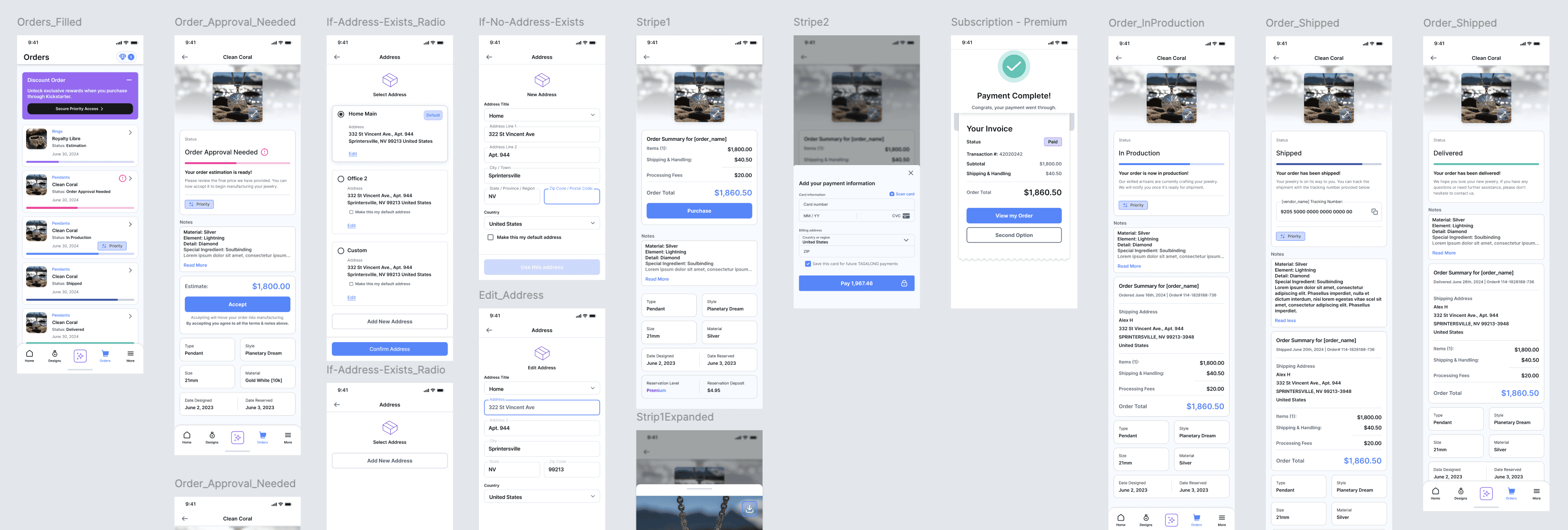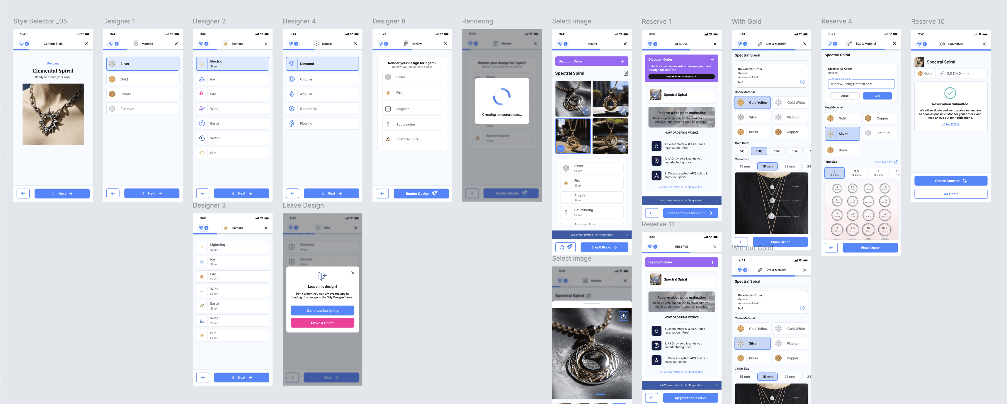 Research was split between consumer behavior and jewelry industry workflows. I gathered insights from jewelers, store owners, and shoppers through interviews, surveys, and prototype walkthroughs. We tested flows on both wireframes and high fidelity screens to refine usability.