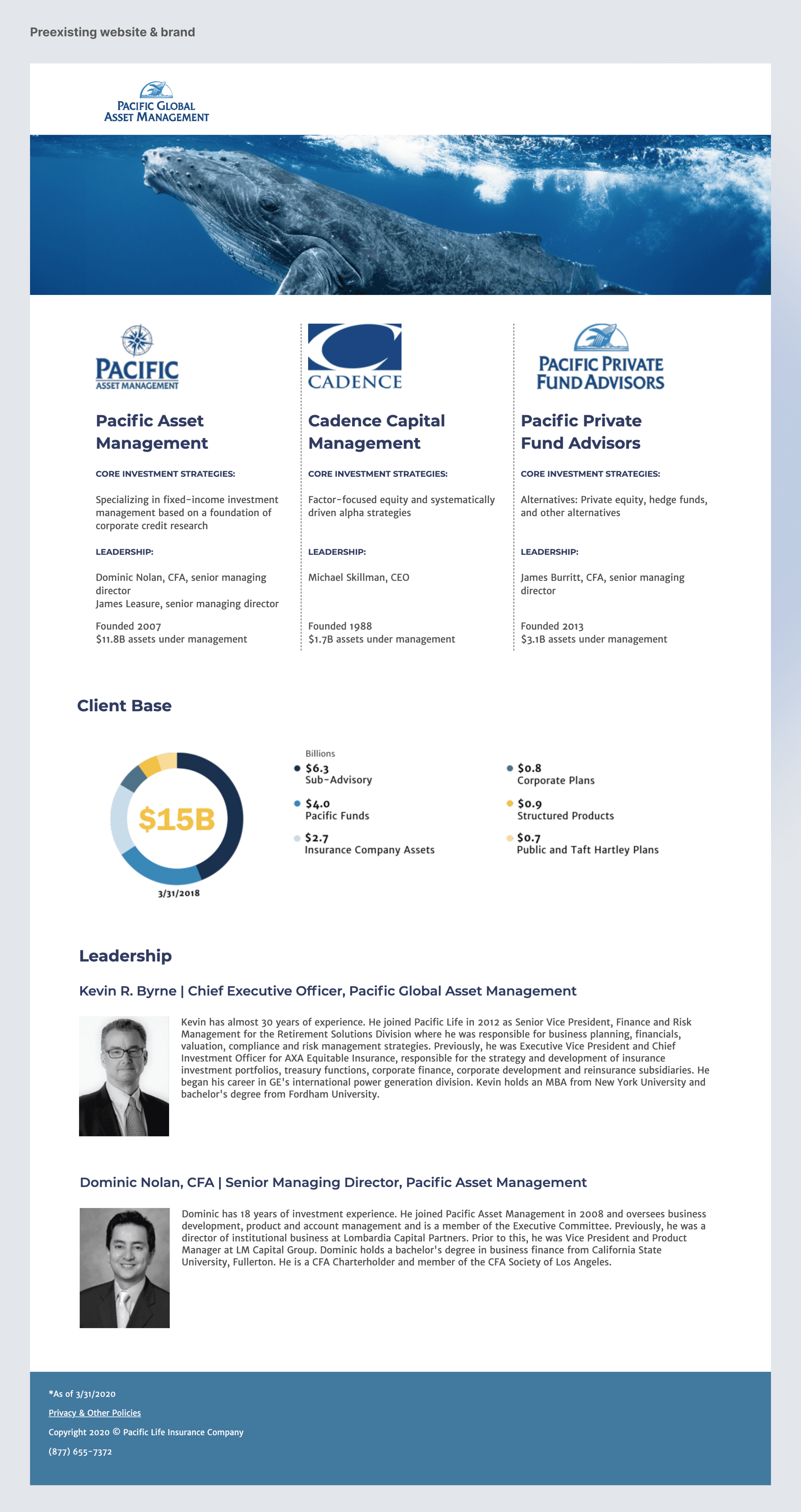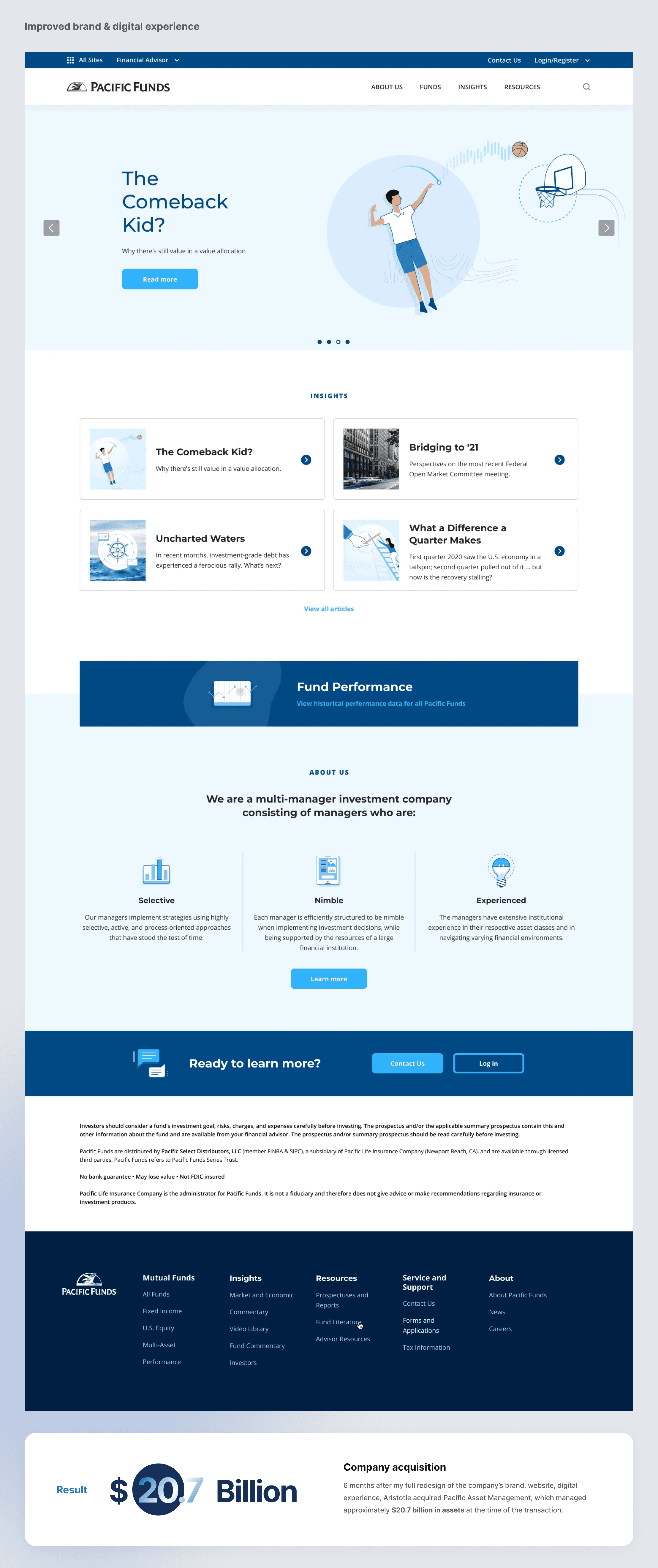 6 months after my full redesign of the company’s brand, website, digital experience, Aristotle acquired Pacific Asset Management, which managed approximately $20.7 billion in assets at the time of the transaction.